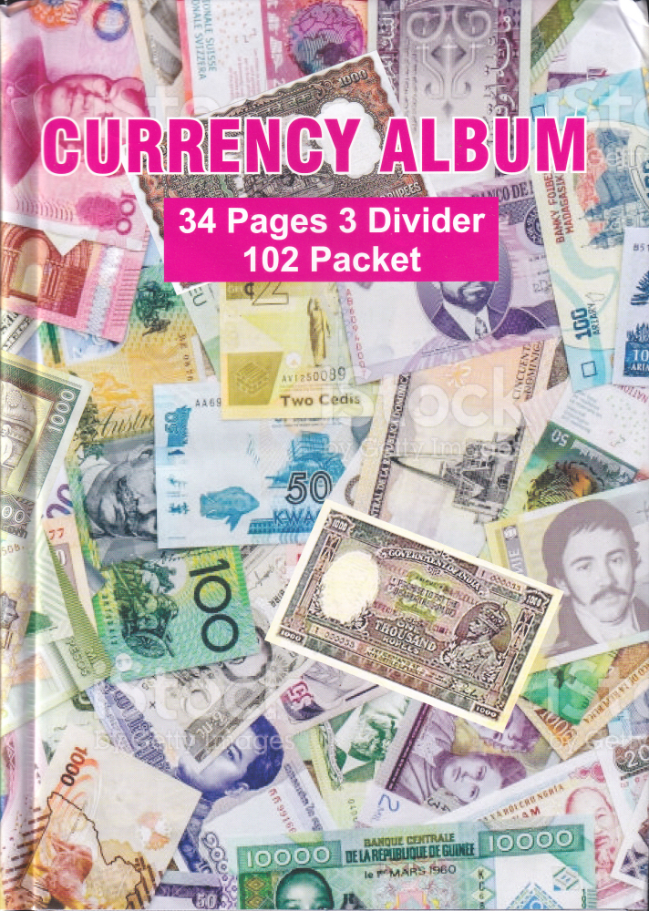 NOTE ALBUM, 34 SHEETS WITH 102 POCKETS, SUITABLE TO KEEP 102 NOTES, MADE IN BHARAT, EXCILLENT QUALITY, 3 DIVIDER SHEETS